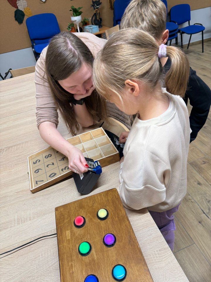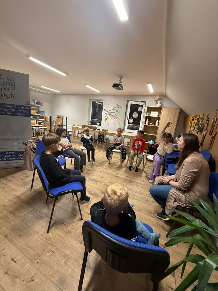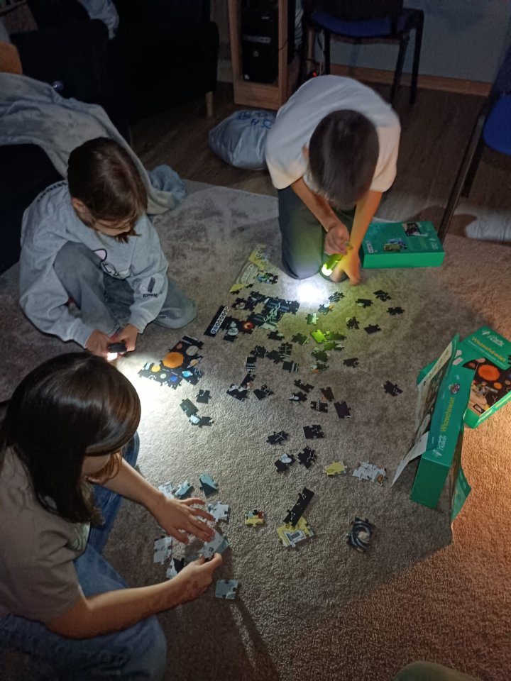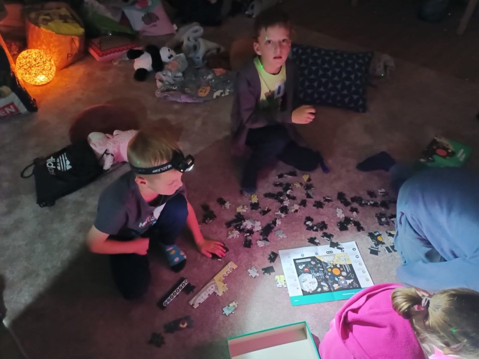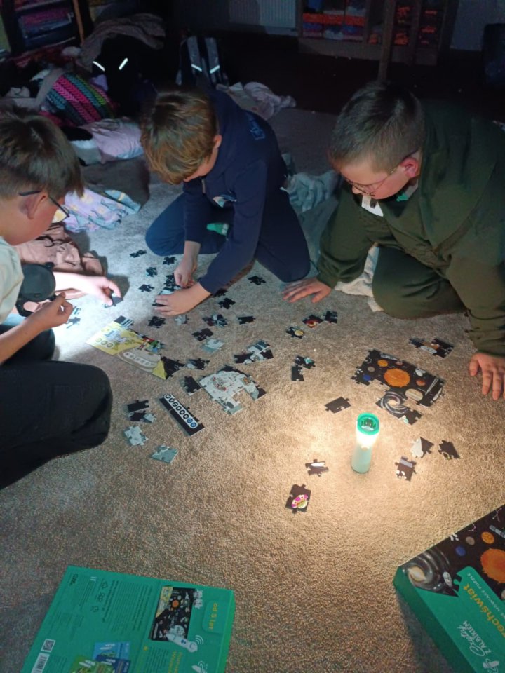 Dzieci podzielone na grupy odkrywały kosmiczne tajemnice ukryte w czterech pomieszczeniach....